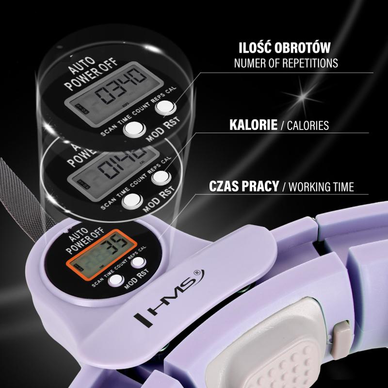 HMS Sada masážní hula hoop HHM13 se závažím, magnety a počítadlem a zeštíhlujícího pásu BR163 fialová