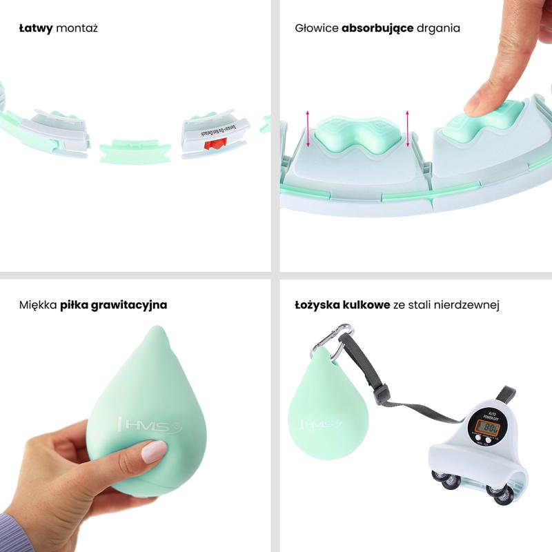 Pravidelné používanie HMS HHW06 dokáže zoštíhliť brucho a pás, krútenie bokmi redukuje tukové tkanivá stehien a sedacích svalov. Rytmický pohyb zapája do tréningu hlboké brušné svaly a svaly panvového dna. Intenzívny tréning urýchľuje metabolizmus a počas krátkeho času spálite obrovské množstvo kalórií – pri klasickom hula hoop je to až 200 kcal za 30 minút, so závažím je počet ešte vyšší.