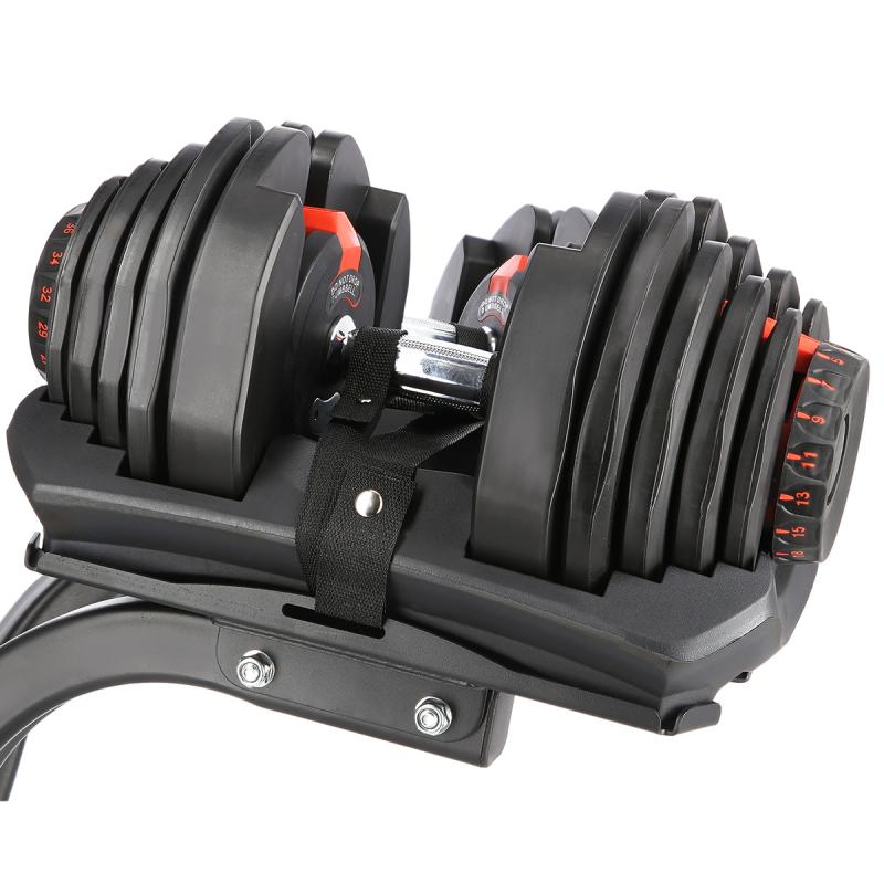 Po vybalení stačí sadu umístit do speciálního stojanu a otočením vnějších voličů nastavit příslušnou zátěž, která je označená v librách (1 lbs = 0,45 kg). Systém zámků spojí s činkou takovou kombinaci závaží, která odpovídají vybrané zátěži a zbytek závaží zůstává ve stojanu. Pokud potřebujete zátěž upravit, pak činku uložíte do stojanu, otočíte voliči a můžete pokračovat v tréninku.