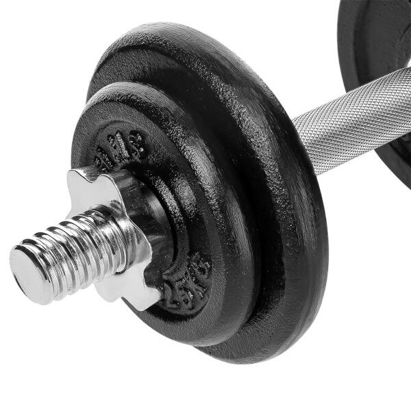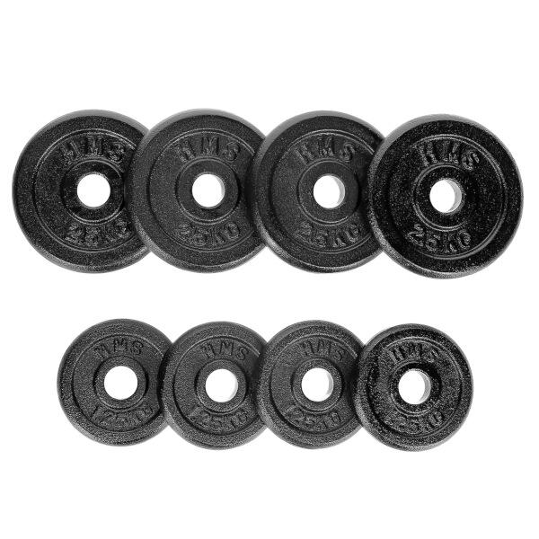 Sada jednoručních činek v kufříku. Kufřík obsahuje 2 jednoruční hřídele, sadu černých kotoučů. 4 kusy matek. Díky balení v plastovém uzaviratelném kufříku, lze činky jednoduše přenášet a skladovat.