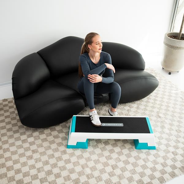 Step je vybavený protišmykovým povrchom, ktorý zabezpečuje istý pohyb aj pri dynamickom cvičení. Gumové nožičky zabraňujú posúvaniu stepu a zaručujú stabilitu a bezpečnosť.