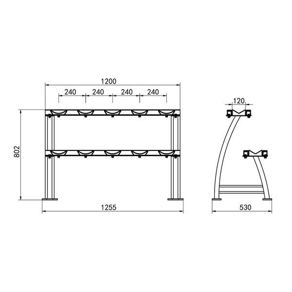 STR38 je robustní a funkční dvouúrovňový stojan na činky, který umožňuje přehledně uložit až 300 kg závaží. Díky široké, stabilní konstrukci a promyšlené ergonomii zaručuje maximální pohodlí a bezpečnost při používání zařízení.Dvě úrovně - více místa, více pohodlí