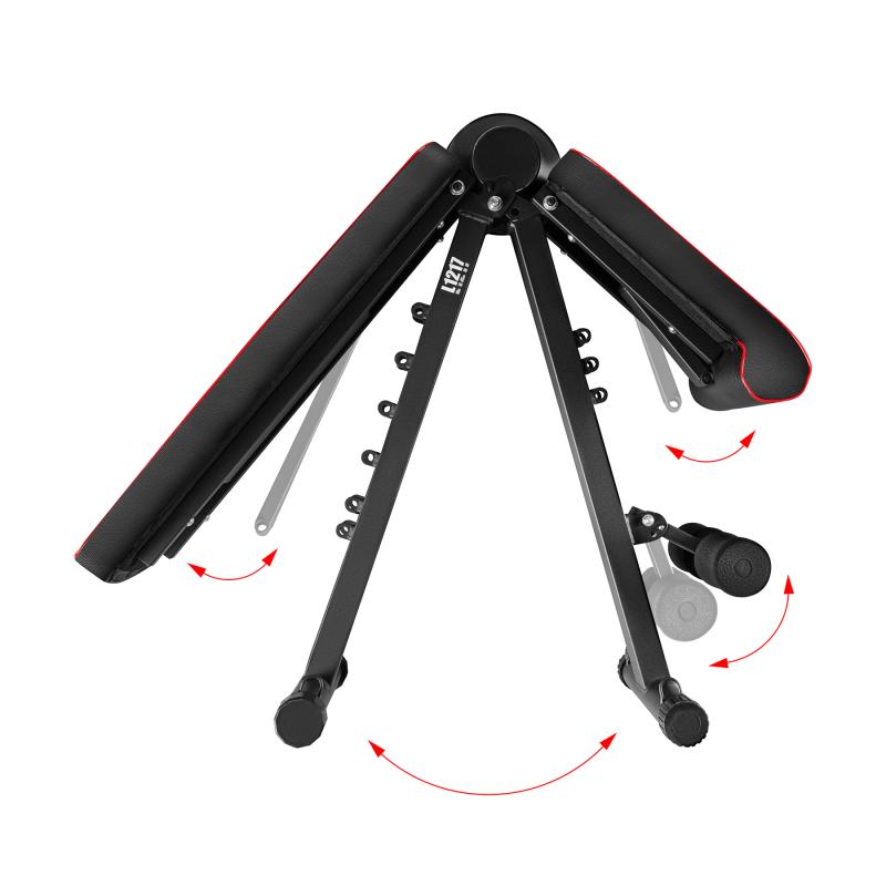 L1217 je vybavená tromi úrovňami nastavenia sedadla a šiestimi úrovňami nastavenia opierky, ktorú možno nastaviť v rozsahu od 102° do 195°. Táto konfigurácia umožňuje vykonávať širokú škálu cvikov vo vzpriamenej, šikmej aj vodorovnej polohe. Je skvelou voľbou pre tréning s činkami alebo osou, ktorá efektívne zapája rôzne svalové skupiny.