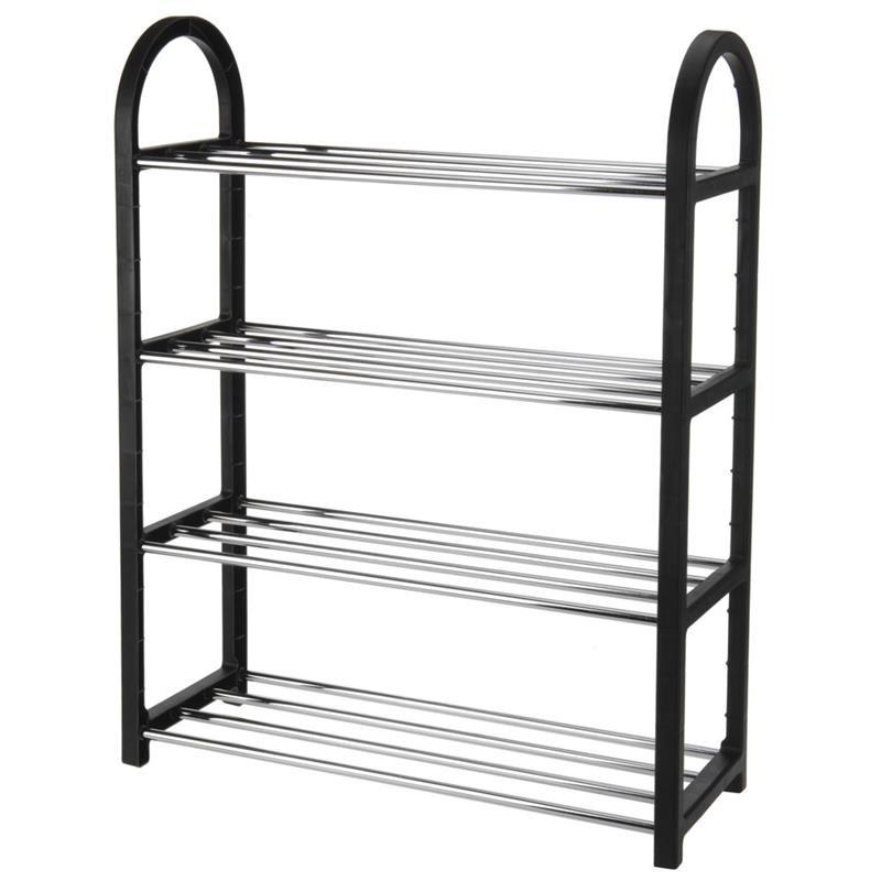 Malý elegantní a praktický botník, chromované trubky, plastové bočnice v černé barvě.Botník 4 police