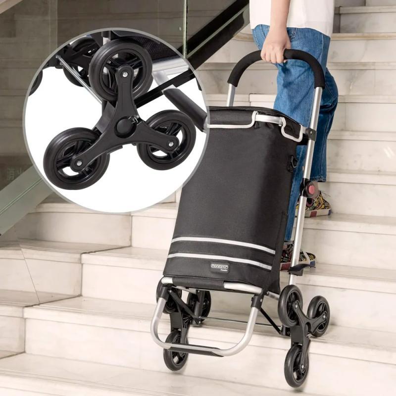 Hlavní výhodou vozíku jsou 3 kolečka na každé straně pro hladký pohyb - usnadňují překonávání překážek jako jsou např. schody. Další výhodou je možnost složení – je možné ho mít složený a rozložit ho jen, když potřebujete.