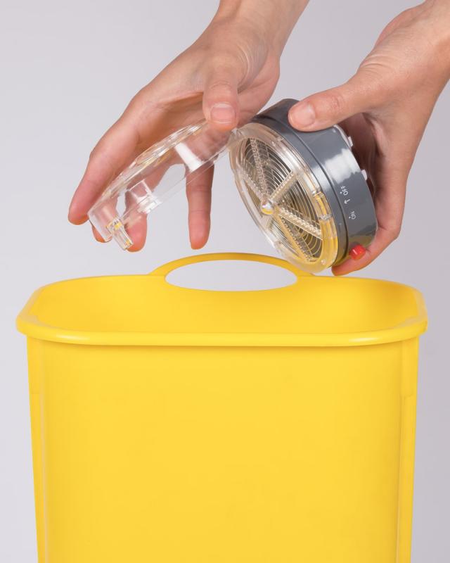 Přenosný lapač na létající hmyz. Přes den se nabíjí, přes noc LED světlo naláká hmyz.Solární lapač hmyzu