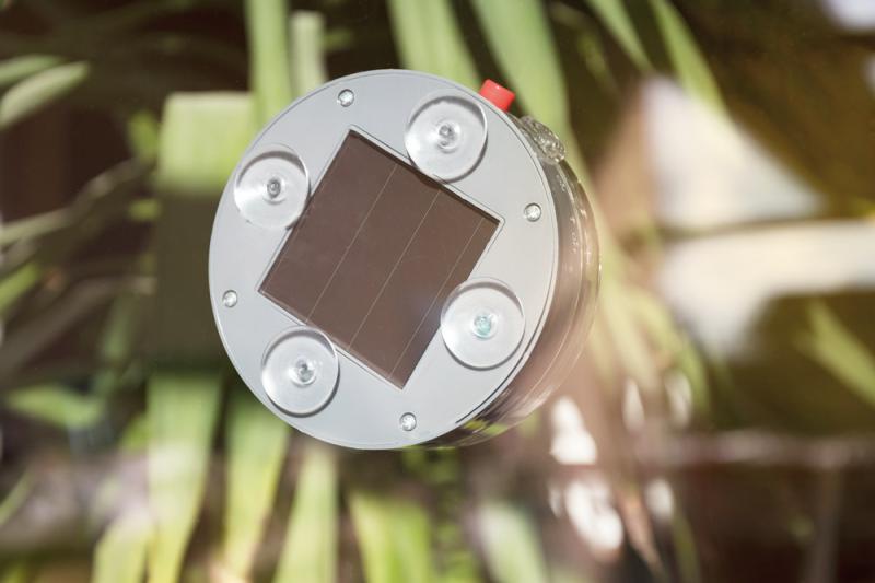 Solární lapač hmyzu je účinný proti létajícímu hmyzu. Solární lapač hmyzu jednoduše připevníte na vnitřní stranu okna pomocí přísavek. Přes den se solární panel nabije, v noci jeho modré LED světlo naláká hmyz, který je usmrcen elektrickým výbojem.
