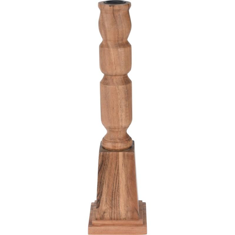 Svícen z akátového dřeva v hnědé barvě. Má speciální design, díky kterému se hodí do každého prostoru. Umístěte jej do své jídelny nebo obývacího pokoje, abyste vytvořili teplejší a příjemnější atmosféru a ukradli dojmy svých hostů.Vlastnosti: