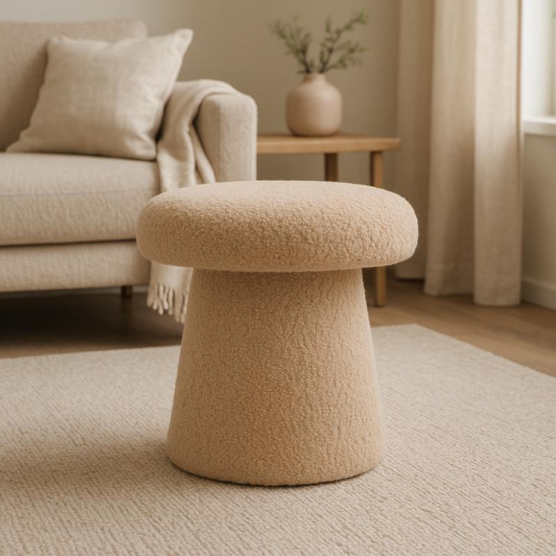 Taburet ve tvaru houby s plyšovým povrchem představuje pohodlný a stylový doplněk do interiéru, který potěší svou hravostí i praktičností. Díky měkkému materiálu si na něm můžete pohodlně odpočinout nebo ho využít jako podnožku. Je vhodný do obývacího pokoje, dětského koutku či ložnice, kde přidá na útulnosti a zajímavém designu.