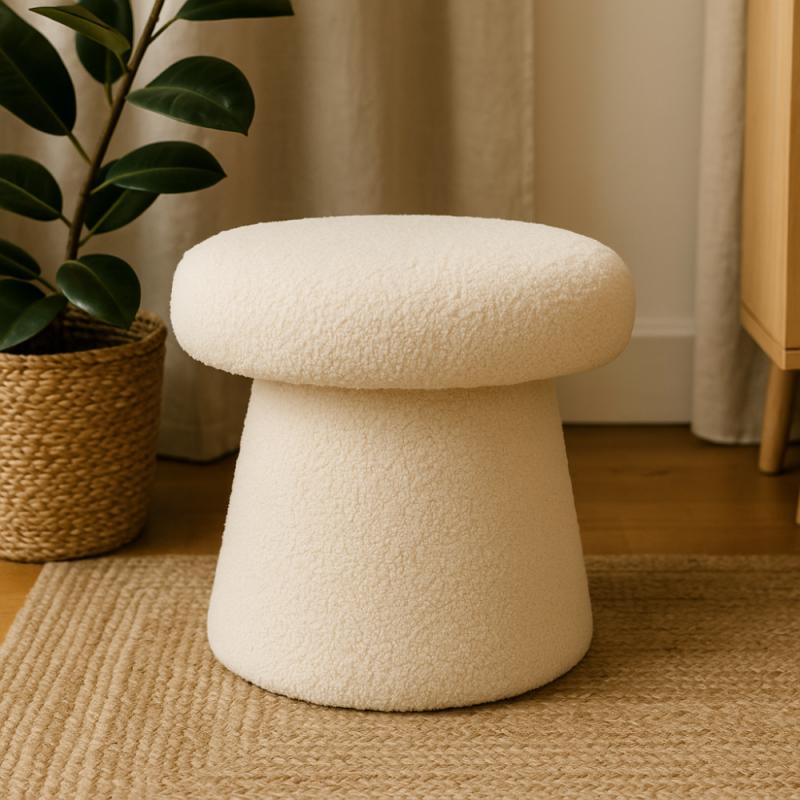 Taburet ve tvaru houby s příjemným plyšovým povrchem představuje praktický a zároveň dekorativní doplněk do interiéru. Díky svému měkkému materiálu poskytuje pohodlné místo k sezení nebo odpočinku nohou, ať už v obývacím pokoji, dětském koutku nebo ložnici.