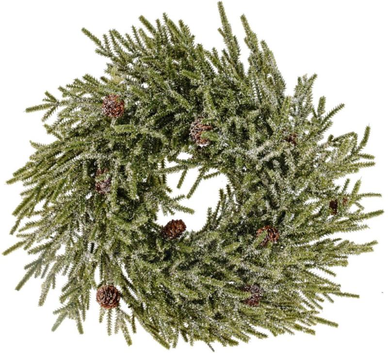 Homestyling Vánoční věnec na dveře či stůl 40 cm přírodní zelená s jinovatkou