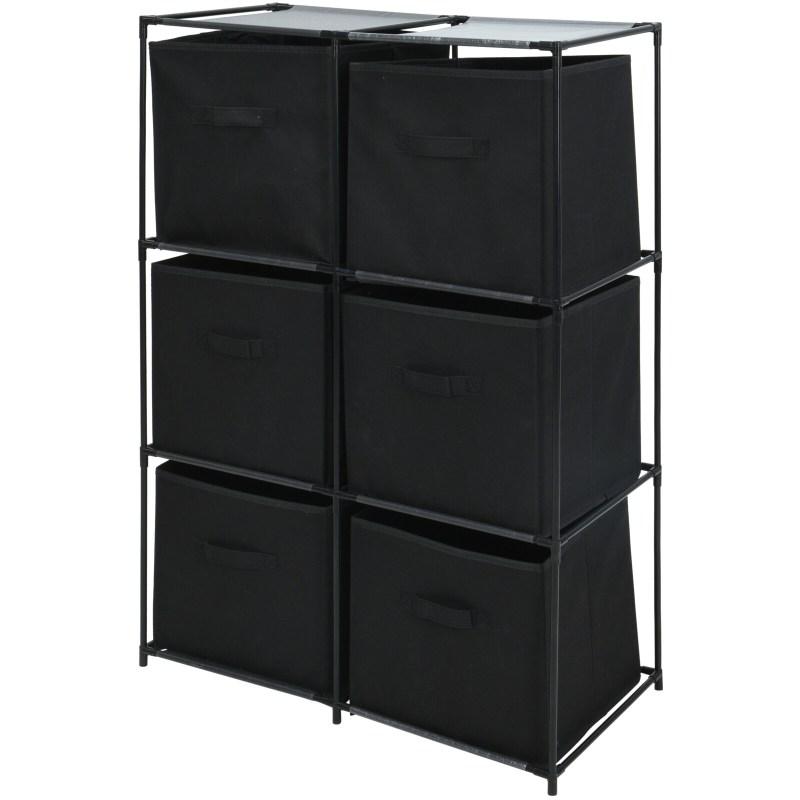 Zásuvková skříň se 6 přihrádkami, kovový rám s netkanými policemi 80gsm, rozměr: 68x35xh102cm, tloušťka trubky: 95mm, černá barva rámu, se 6 netkanými úložnými boxy a rukojetí872057342413445.82