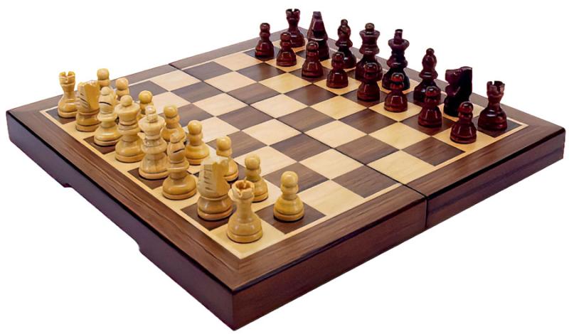 HOT Games Dřevěné magnetické šachy intarzované 24cm