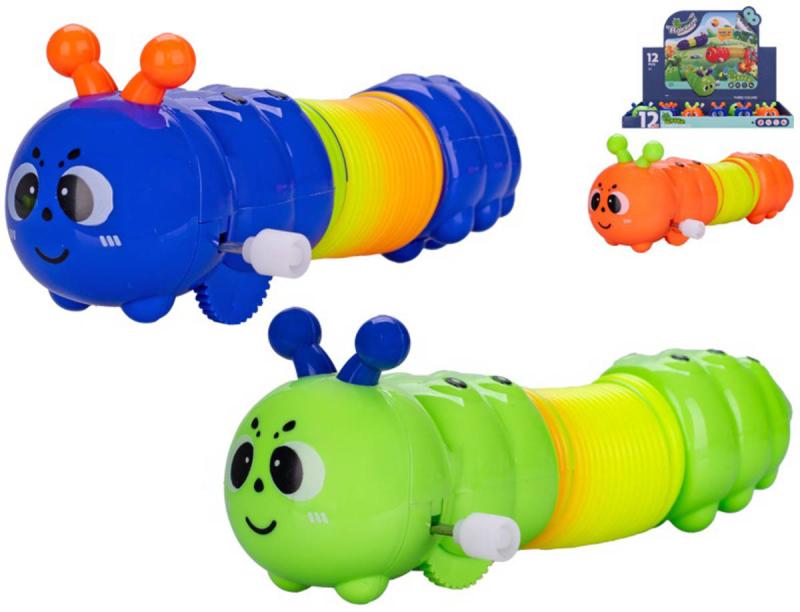 Veselá barevná baby natahovací jezdící housenka, zvířátko s obličejem, se spirálou, na natažení, na klíček, pro nejmenší děti. 3 barevné varianty. Velikost 13,5-40cm.Hračky pro nejmenší děti mají krásný vzhled, jsou lehké a navíc fungují jako aktivní hračky - stimulují dítě vizuálně i prostřednictvím hmatu.