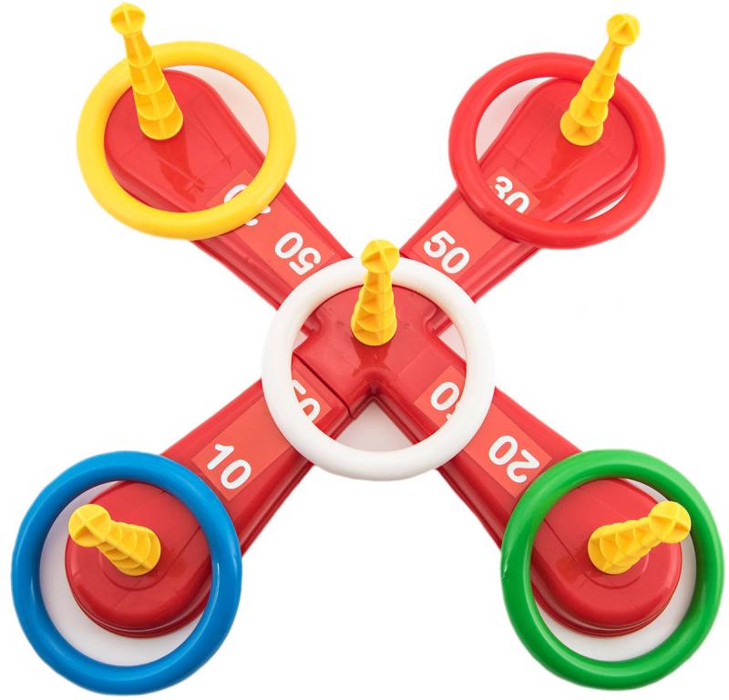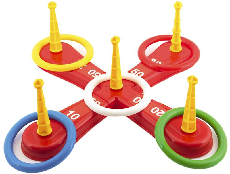 Zábavná hra, při které se hází kroužky na kříž. Balení obsahuje červený házecí kříž s pěti hroty a pět barevných kroužků. Baleno v síťce.Jednotlivé dílky jsou vyrobené z plastu. Tato hra se bude líbit zejména nejmenším dětem, které mohou sbírat body za každý hod, kdy se jim podaří umístit kroužek na hrot. Natrénují si také přesnost a trpělivost.