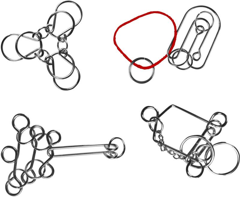 Velmi oblíbená zábava nejen pro děti, ale i dospělé. Otestujte svou trpělivost, představivost a vyřeš tento kovový hlavolam! Tvým úkolem je oddělit jednotlivé díly od sebe a znovu je spojit do původního stavu. Díky malým rozměrům můžeš mít hračkus tále u sebe a zkrátit si tak chvíle při čekání.