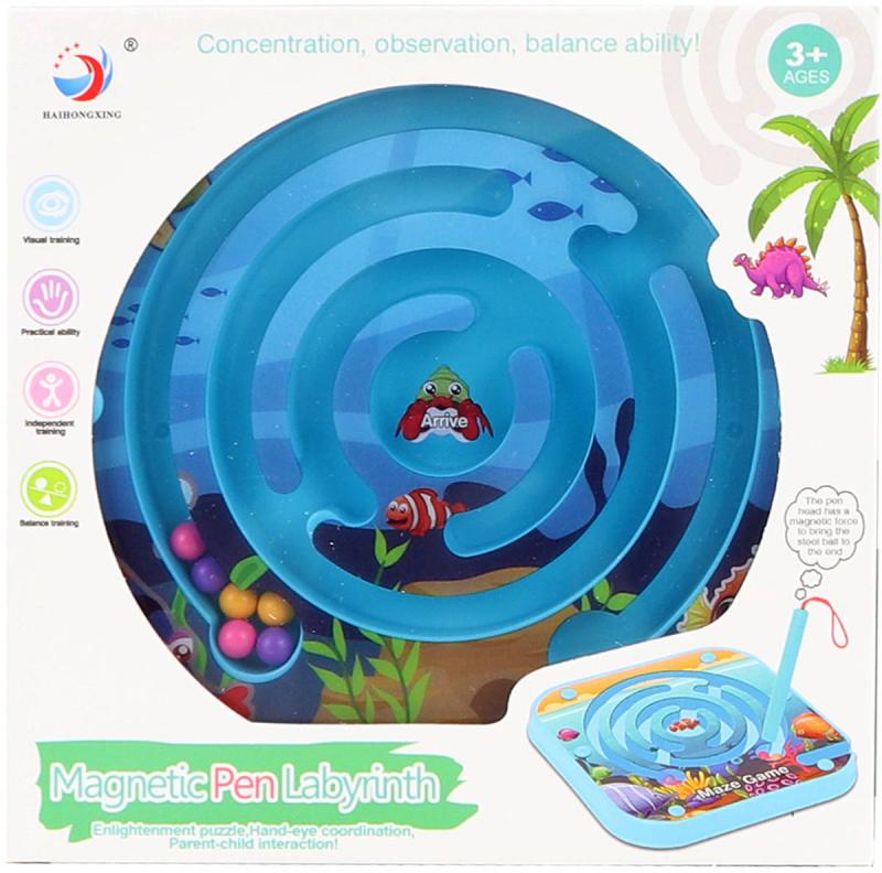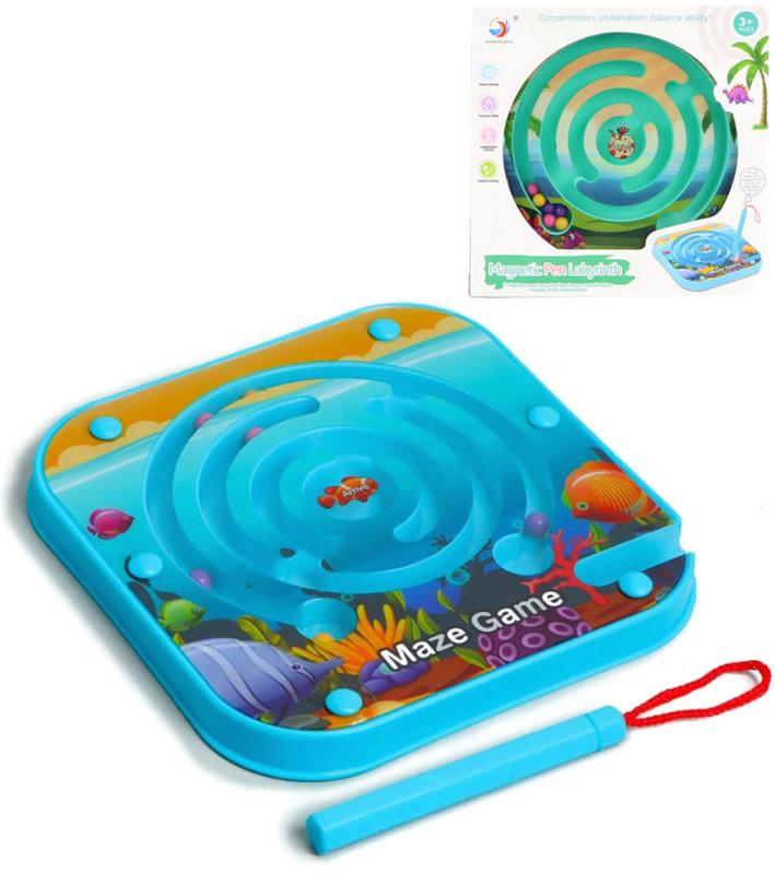 Hra kuličkový labyrint - bludiště s magnetickým perem, s motivem "mořský svět", o velikosti 13 x 13cm. 2 barevné varianty.Představujeme vám fascinující hlavolam labyrint – ideální dětskou hračku, která poskytne hodiny zábavného trávení času jak pro chlapce, tak pro dívky. Tato jedinečná logická hračka v podobě bludiště s kuličkou bude skvělým dárkem pro děti od 3 let, protože podporuje rozvoj logického myšlení, koordinace a trpělivosti. Součástí hlavolamu je stylus s magnetickou špičkou, který umožňuje snadno pohybovat kuličkami po labyrintu.