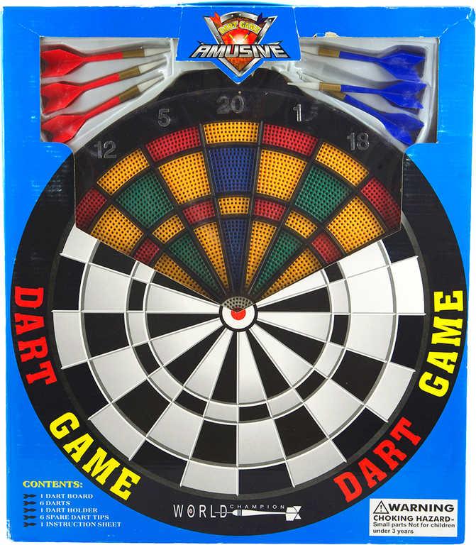 Hra šipky terč závěsný 40cm plastový + 6 šipek (společenská hra)