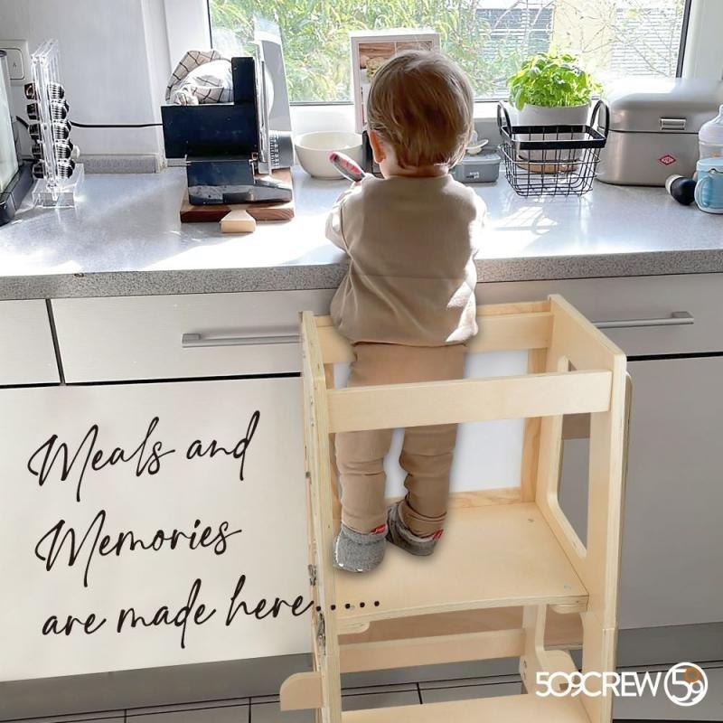 Pomáhá vám rád váš potomek s vařením a pečením? Nebo ještě nedosáhne k umyvadlu, aby si před spaním mohl vyčistit zuby? Pořiďte mu učící věž Five O Nine Crew. Je vhodná pro děti od 18 do 48 měsíců a unese až 50 kg.