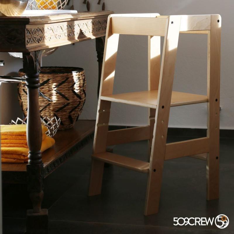 Učící věž vhodná pro děti od 18 do 48 měsíců. Nosnost 50 kg. Kvalitní přírodní překližka, neobsahuje formaldehyd. Nastavitelná výška horní plošiny – 34 cm, 40,5 cm a 47 cm.Pomáhá vám rád váš potomek s vařením a pečením? Nebo ještě nedosáhne k umyvadlu, aby si před spaním mohl vyčistit zuby? Pořiďte mu učící věž Five O Nine Crew. Je vhodná pro děti od 18 do 48 měsíců a unese až 50 kg.