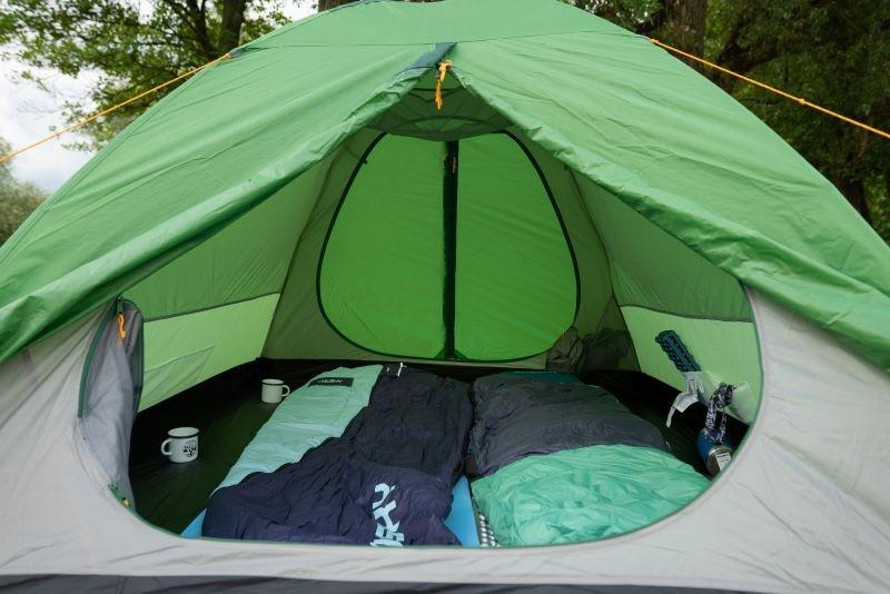 Kvalitní a prodyšné látky zajišťují odolnost proti roztržení a pohodlí během pobytu ve stanu
