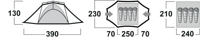 • Konštrukcia dvojplášťový samonosný stan s vonkajšou konštrukciou