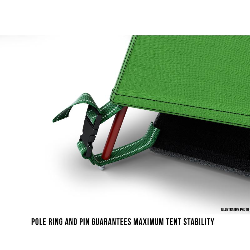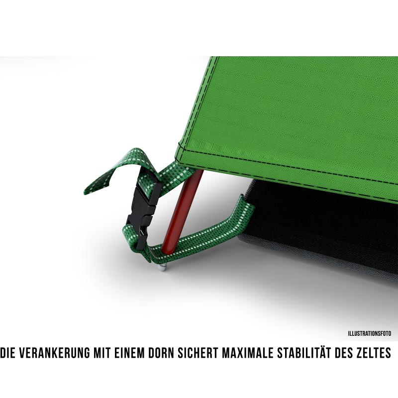 • Lehká a pevná duralová konstrukce s odlehčenými kolíky zajišťuje stabilitu i v náročném počasí a zároveň usnadňuje přenášení.