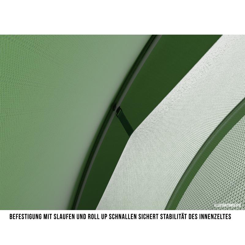 • Prostorný vnitřní prostor pro 4 osoby a předsíň s pevnou podlážkou poskytují dostatek místa pro spaní i uskladnění zavazadel.