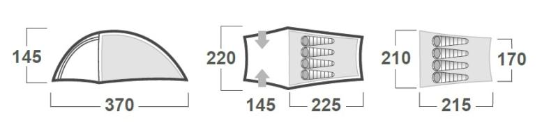 | Rozměr vnějšího stanu | 220 × 370 × 145 cm |