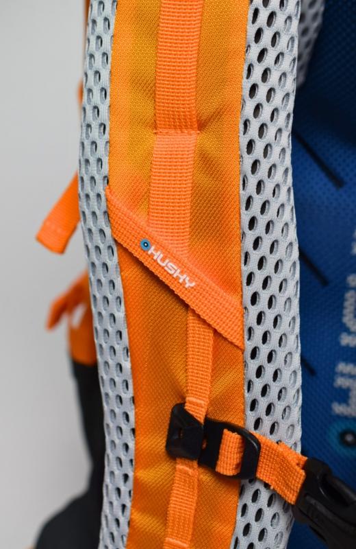 Chrbtová časť je vybavená priedušnou sieťovinou, ktorá neabsorbuje vlhkosť a je antialergická, čo pomáha udržať chrbát suchý a svieži. Nastaviteľné hrudné a bedrové popruhy umožňujú presné prispôsobenie veľkosti a stabilizáciu nákladu.