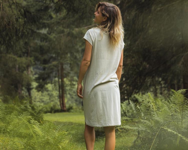 Materiál dobře odvádí vlhkost od těla, což pomáhá udržet pocit svěžesti i při vyšší fyzické aktivitě. Díky kombinaci 60 % bavlny a 40 % polyesteru jsou šaty příjemné na dotek a zároveň odolné.