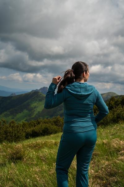 Materiál je tenký, ľahký a zároveň pružný, vďaka čomu poskytuje vysoké pohodlie pri dynamických pohyboch. Technológia bez podlepených švov zabezpečuje priedušnosť 10 000 g/m2/24 h, čo znamená účinnú ochranu pred vlhkosťou a zároveň efektívny odvod potu z tela.