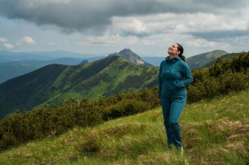 Priedušnosť materiálu činí 10 000 g/m2/24 hod, čo je vhodné pre aktívny pohyb aj pri premenlivom počasí.
