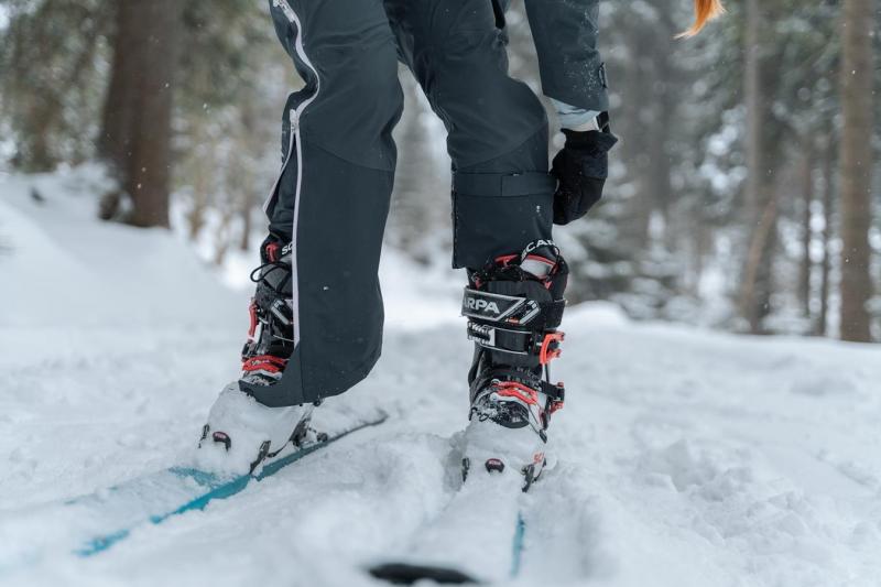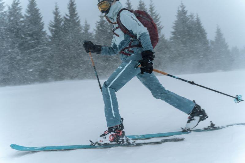 Ochranný spodní lem nohavic zabrání protržení při najetí lyží.