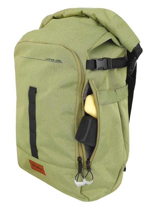 Tento městský batoh je navržen tak, aby spojil praktičnost a ohleduplnost k přírodě. Je vyroben z recyklovaného polyesteru 600D (RPET), který je odolný a zároveň šetrný k životnímu prostředí, doplněný o voděodpudivou úpravu, která pomáhá chránit obsah batohu před nepříznivým počasím.