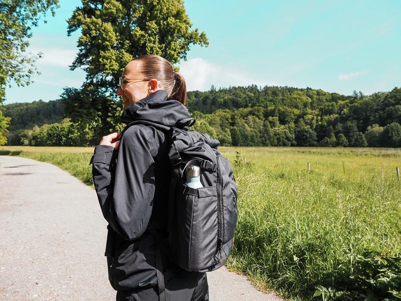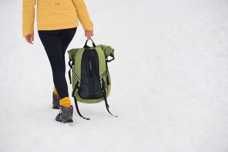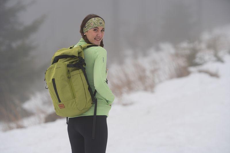 • Odolný recyklovaný materiál s voděodpudivou úpravou chrání obsah batohu