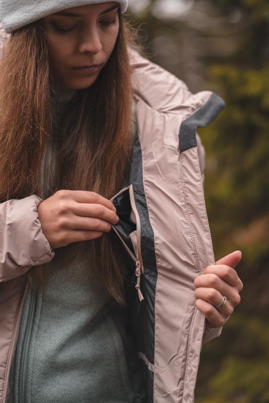 Středně plněná univerzální dámská bunda s kapucí Nenie L tě zahřeje v chladných zimních dnech a poskytne ti dostatečnou ochranu před rozmary počasí. Přiléhavý a pohodlný střih ti zajistí volnost pohybu při jakékoliv outdoor aktivitě od podzimu do jara. Vlastnosti: Prodyšný a voděodolný materiál HUSKYTECH 7 000 s membránou s vodním sloupcem: 7 000 mm H2O a prodyšností: 5 000 g/m2/24 h. Pečlivě tkaná konstrukce pro chladné a mírnější povětrnostní podmínky. DWR vodoodpudivé vnější ošetření vrchní vrstvy materiálu oděvu zabraňuje prosakování vlkhosti a voda tak okamžitě odtéká po povrchu ve formě kuliček.