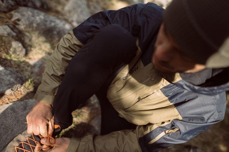 • Povrchová úprava DWR odpuzuje vodu, která stéká po bundě ve formě kapiček, čímž se zabraňuje promočení materiálu.