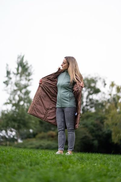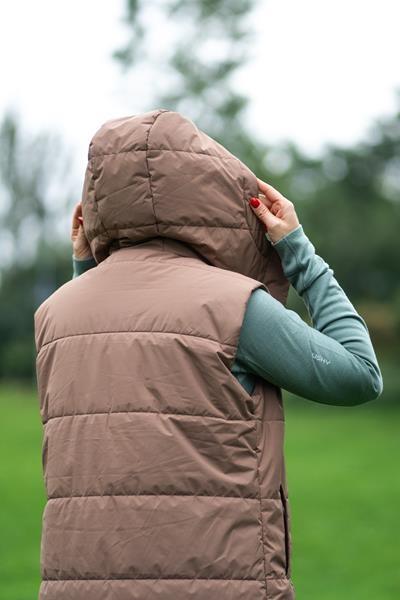 Dlouhá délka vesty poskytuje lepší ochranu proti chladu a větru, zatímco kapuce přidává další vrstvu ochrany při nepříznivém počasí. Díky kombinaci funkčních materiálů je vhodná jak na běžné nošení ve městě, tak na lehčí outdoorové aktivity, kde je potřeba ochrana před vlhkostí a chladnějším větrem.