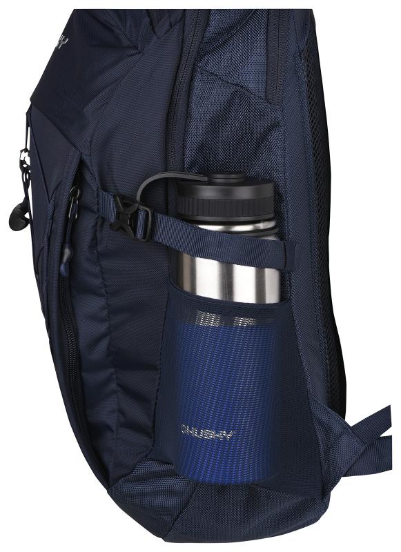 anatomicky tvarovaný chrbtový systém z EVA výlisku , priedušné polstrovanie na anatomicky tvarovaných ramenných a bedrových popruhoch, dve hlavné komory, bedrový pás, hrudný popruh, organizér, bočné kompresné popruhy.
