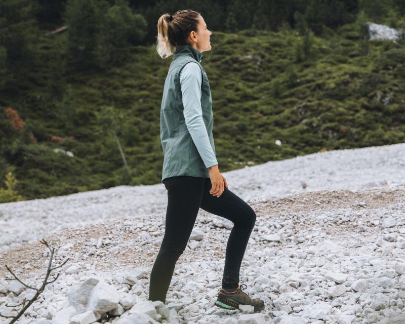 Technologie materiálu je navržena bez podlepení, což umožňuje vysokou prodyšnost 18 000 g/m2/24 h, takže vesta efektivně odvádí pot a zároveň chrání před vlhkostí. Vodní sloupec 20 000 mm H2O zaručuje odolnost proti pronikání vody i při náročných podmínkách.