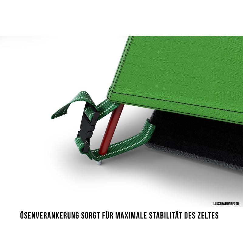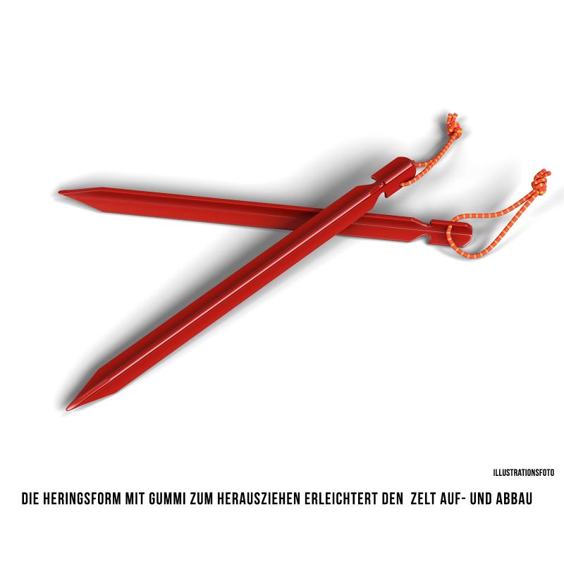 Lehká a pevná duralová konstrukce s odlehčenými kolíky k ukotvení vytvářejí stabilitu stanu i v nepříznivém počasí.
