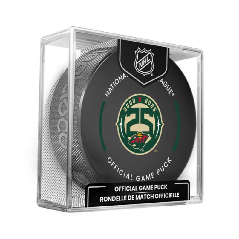 Oslávte štvrťstoročie histórie hokejového klubu Minnesota Wild s týmto oficiálnym fanúšikovským pukom k 25. výročiu, ktorý prináša nielen dizajn, ale aj unikátnu technológiu priamo z ľadovej plochy NHL.