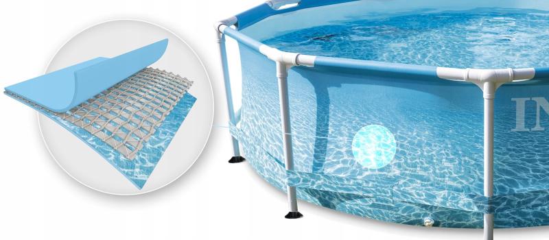 Materiál bazéna je vyrobený z kvalitného trojvrstvového PVC materiálu. Dno a bočné steny sú vyrobené zo 3 vrstiev materiálu Super-Tough. Tento veľmi pevný materiál sa skladá z polyesterovej podkladovej tkaniny so silným, obojstranne nalaminovaným PVC. Super-Tough je odolný proti benzínu, oleju a obzvlášť odolný proti oderu, nárazu a slnečnému žiareniu. Foto potlač na vonkajšej strane a dne bazéna. K bazénu môžete pripojiť ľubovoľnú kartušovú či pieskovú filtráciu z našej ponuky. Pre napojenie filtrácie sú pripravené priechody stenou bazéna o priemere 32 mm (5/4").