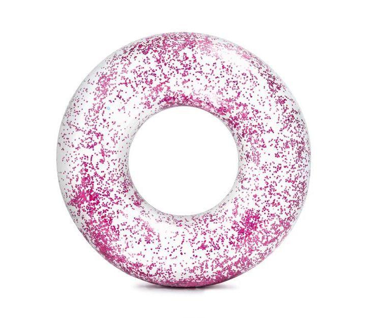 Transparentní kruh se zlatými nebo růžovými glitry. Pro děti od 9 let.Nafukovací kruh Sparkling Glitter