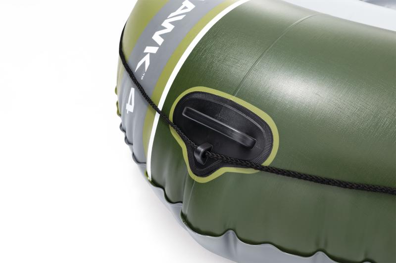 Nafukovací člun Seahawk™ 4 je skvělou volbou pro všechny, kdo chtějí na vodě strávit příjemný čas při rybaření, relaxaci nebo veslování. Díky třem vzduchovým komorám, z nichž jedna je pomocná uvnitř hlavního trupu, nabízí zvýšenou bezpečnost během plavby. Člun je vyroben z odolného SuperStrong™ PVC, které je zesílené molekulární strukturou, což zajišťuje vysokou pevnost a odolnost vůči nárazům i oděru.