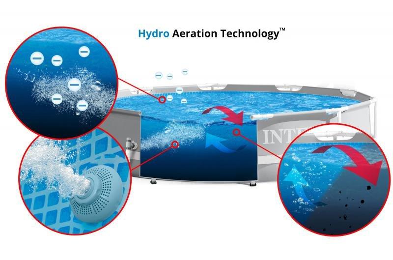 Súčasťou balenia je kartušová filtrácia s výkonom 3 785 litrov za hodinu, ktorá efektívne udržiava vodu čistú a obsahuje všetky potrebné prípojky pre jednoduché pripojenie. Pre pohodlný vstup a výstup z bazéna sú priložené bezpečnostné schodíky. Ďalej balenie obsahuje plachtu pod bazén, ktorá chráni dno pred poškodením, a kryt cez bazén, ktorý pomáha udržať vodu čistú a chránenú pred nečistotami.