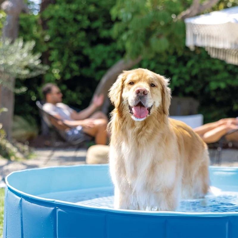 Stabilní stěny a protiskluzové dno zajišťují bezpečnost zvířat a umožňují jim pohodlně se čvachtat bez rizika uklouznutí. Modrá barva s ozdobnými otisky tlapek na spodní straně dodává produktu estetický vzhled, který se perfektně hodí do domácí zahrady nebo terasy. Bazén je lehký a kompaktní, díky čemuž se dá snadno přepravovat a skladovat mimo sezónu.