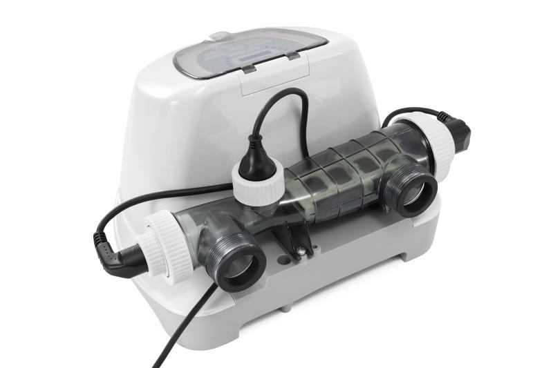 Udržování vody v bazénu čisté a zdravé během letní sezóny vyžaduje spolehlivé řešení dezinfekce. Tento solinátor vytváří chlór přímo z rozpuštěné soli v bazénové vodě, což efektivně ničí bakterie, viry a řasy a zároveň oxiduje organické nečistoty. Díky velké titanové elektrodě dokáže produkovat chlór při nižší koncentraci soli, která u tohoto modelu činí pouhých 950 ppm. To znamená menší potřebu soli a šetrnější provoz zařízení.