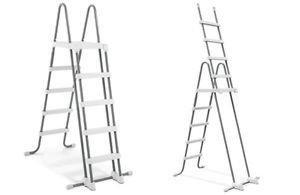 Stupne na vonkajšej strane schodíkov je možné otvorením dvoch sklápacích uzáverov jednoducho a rýchlo odstrániť alebo vyklopiť. Deti tak už nemôžu vyliezť do bazéna.